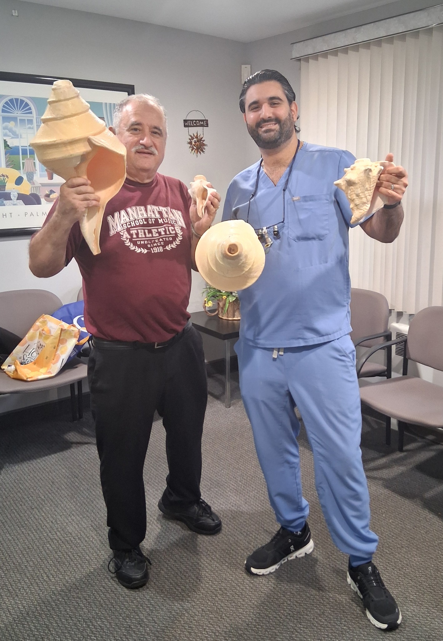 Conch shell duet, Demetrios Kastaris, Steve Turre, Queens Theatre in the Park, Flushing New York, December 17, 2004, photo credit Jerry Lacay.
