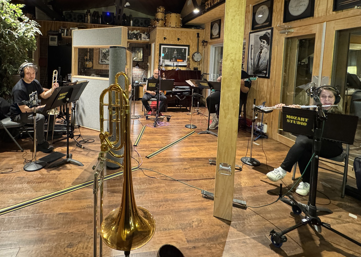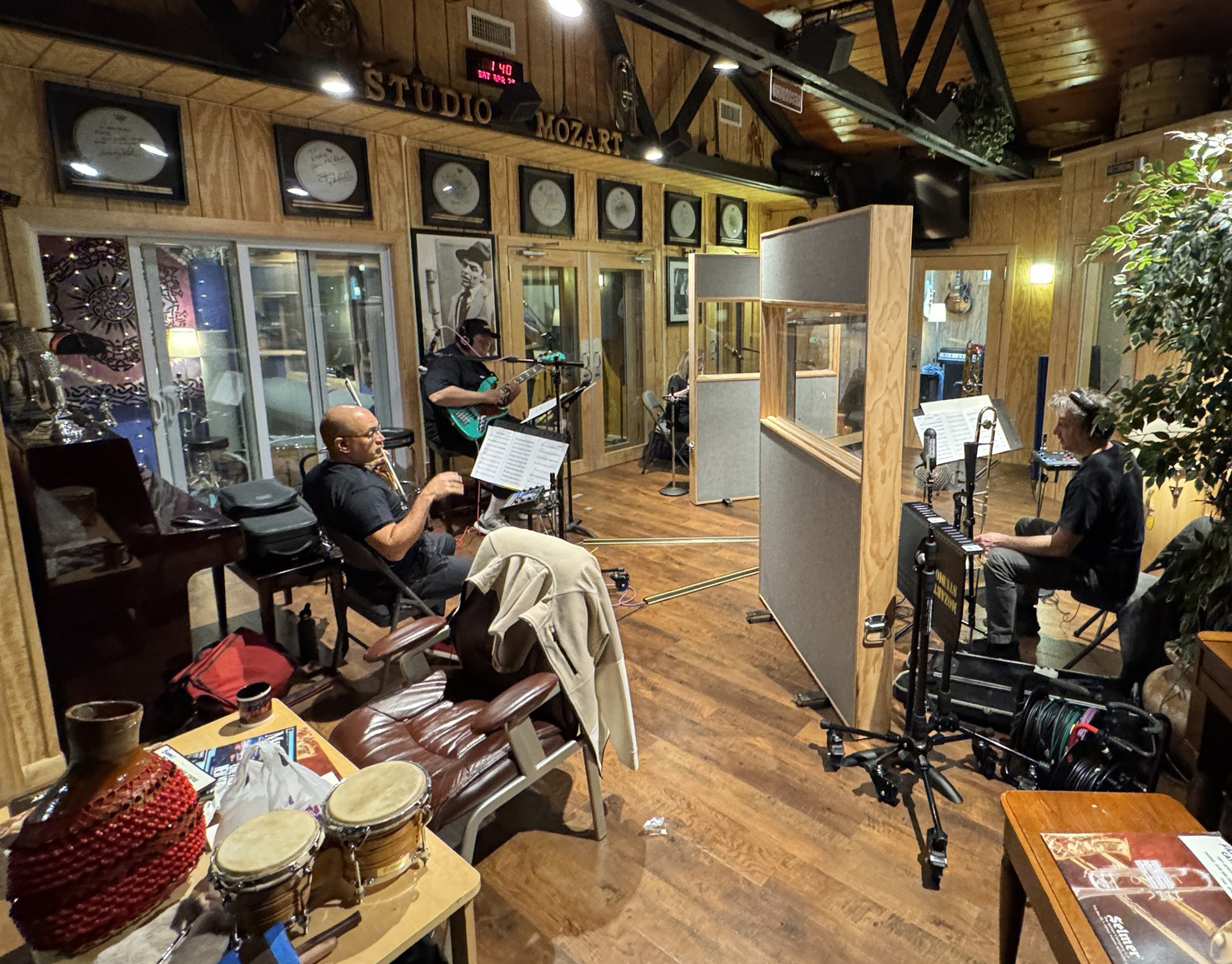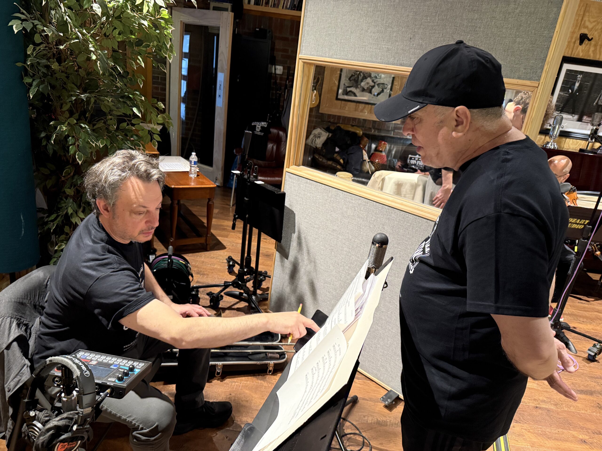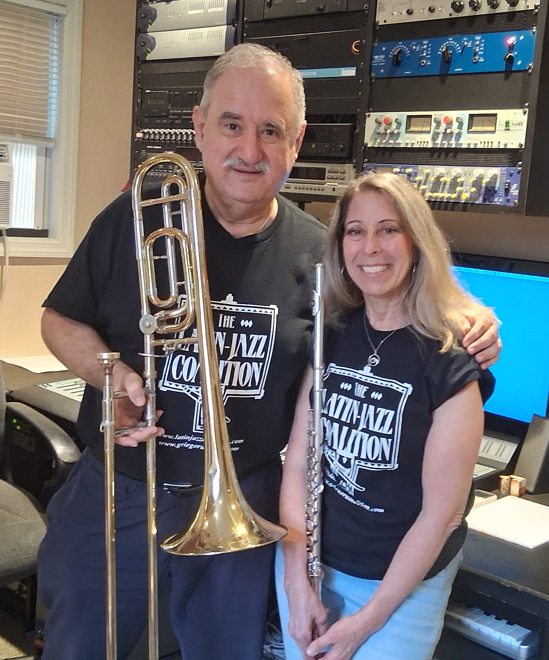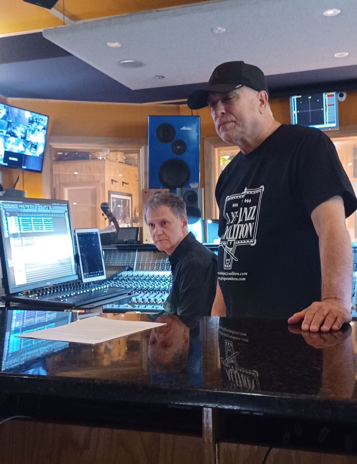 Claudio Roditi, Demetrios Kastaris recording at Skylight Studio, Bellville, New Jersey, July 1999 (photo credit Hilda Kastaris)