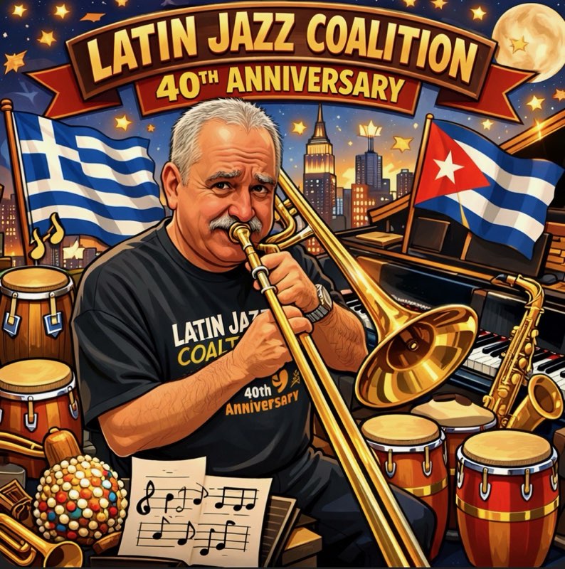 The Latin-Jazz Coalition CD Poster from July, 2000. Mounted in the Spanish Harlem Salsa Museum March, 2024.