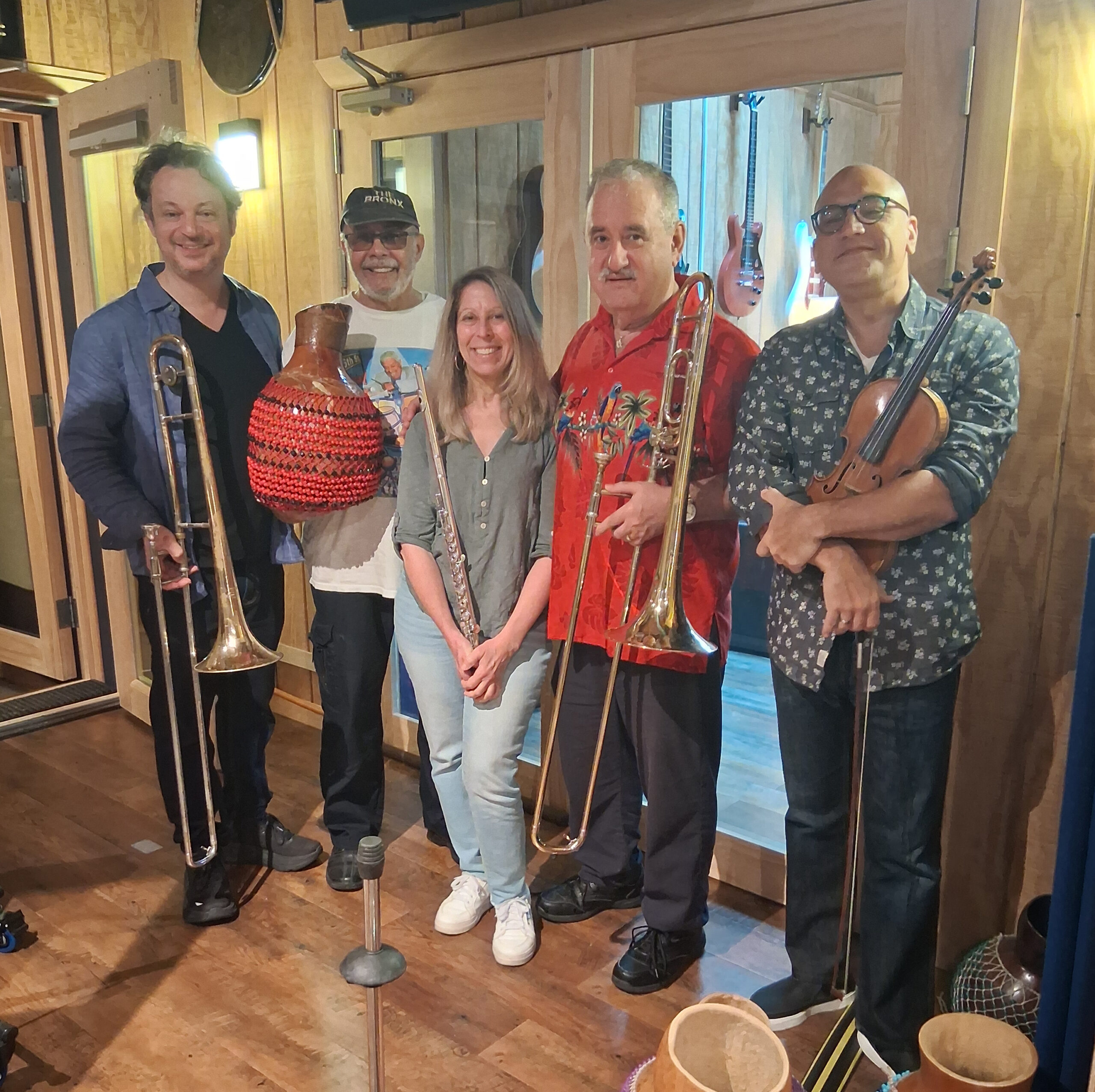 Connie Grossman, Noah Bless, Alí Bello, Demetrios Kastaris, Steve Turre, Queens Theatre in the Park, Flushing New York, December 17, 2004, photo credit Jerry Lacay.