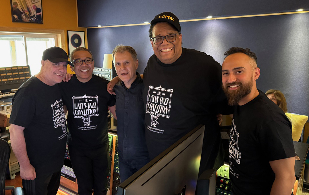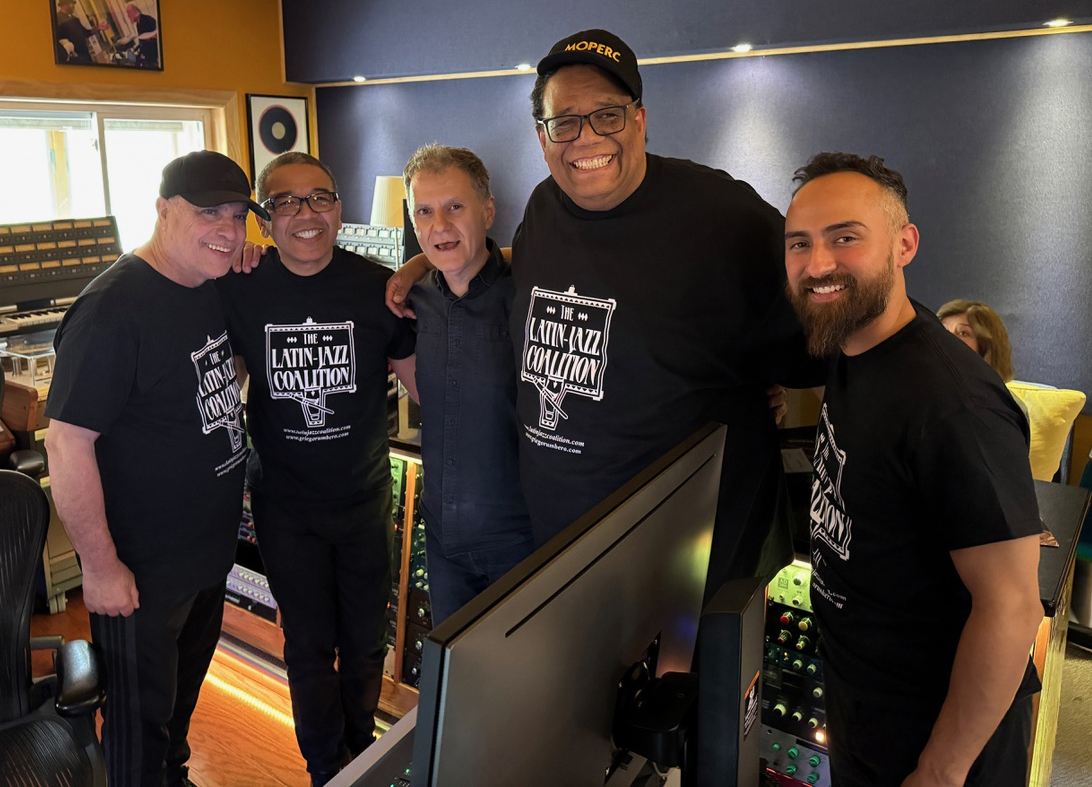 left to right: Mitch Frohman, Demetrios Kastaris, Tito Puente, Freddy Zanella, Victor Rendón, February 2000 Architect and Designer's Building, NYC (photo credit Ito Rodriguez)