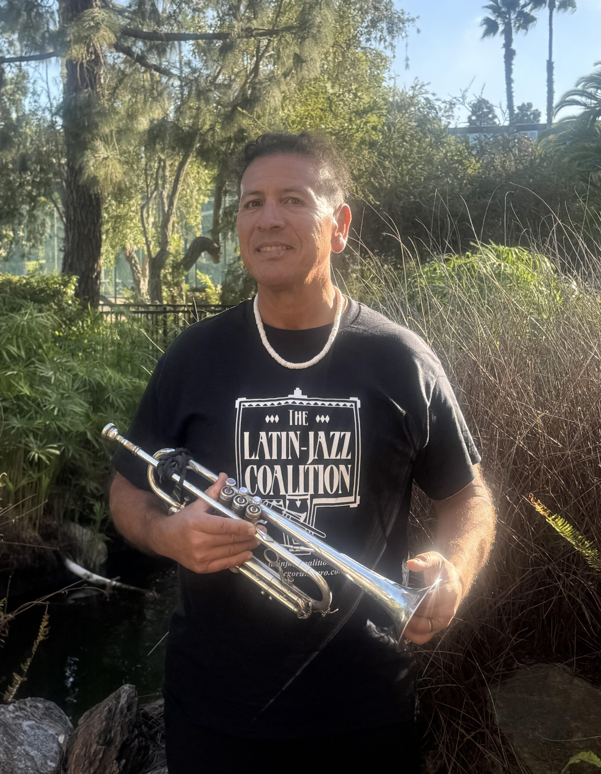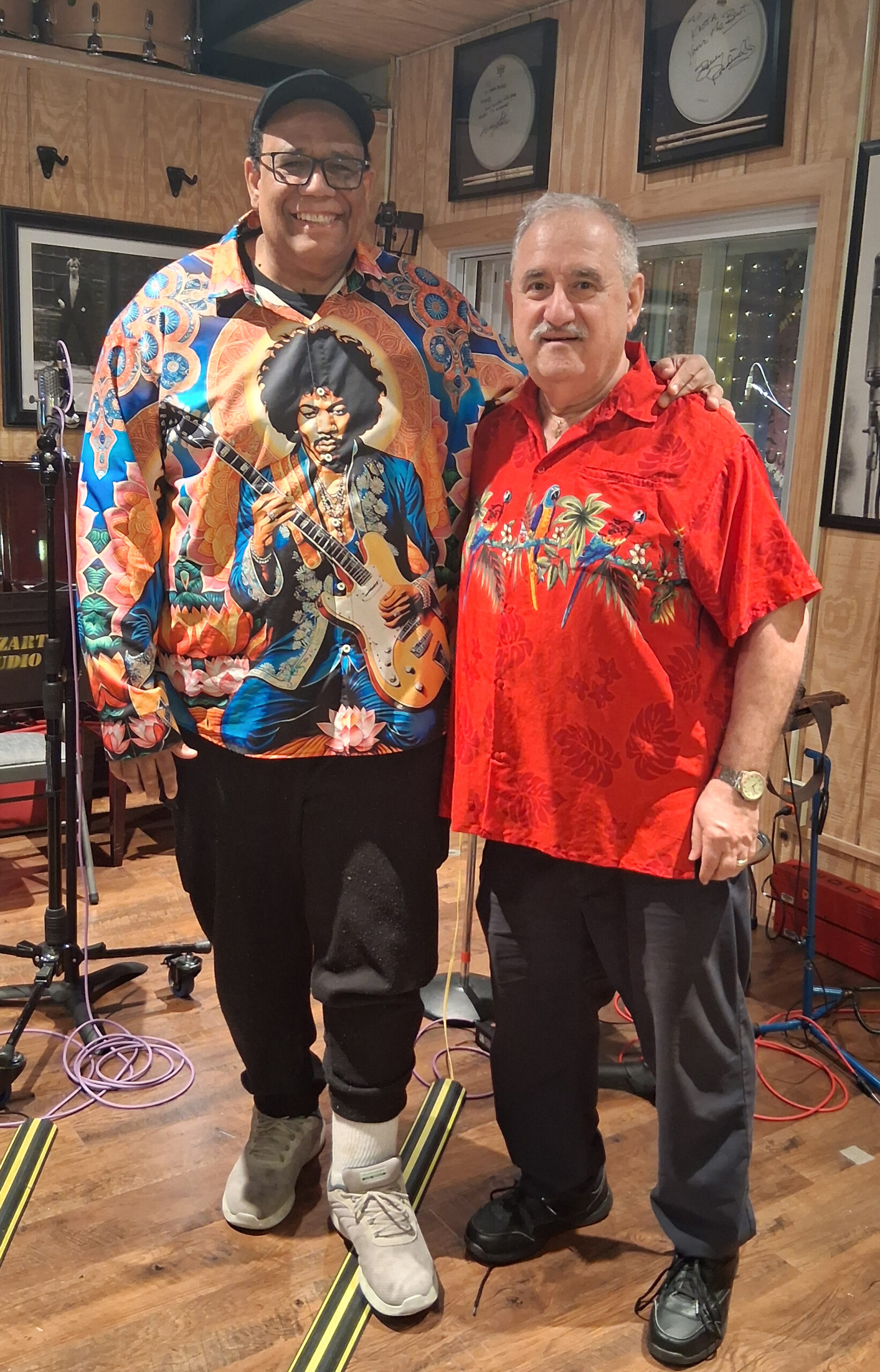 Left trumpeter/multi instrumentalist/composer/vocalist David Rios (leader of Project Psalm 105 in California with concerts in Los Angeles and other parts of California), Right Demetrios. Photo taken in San Juan Bautista California, September 2024.