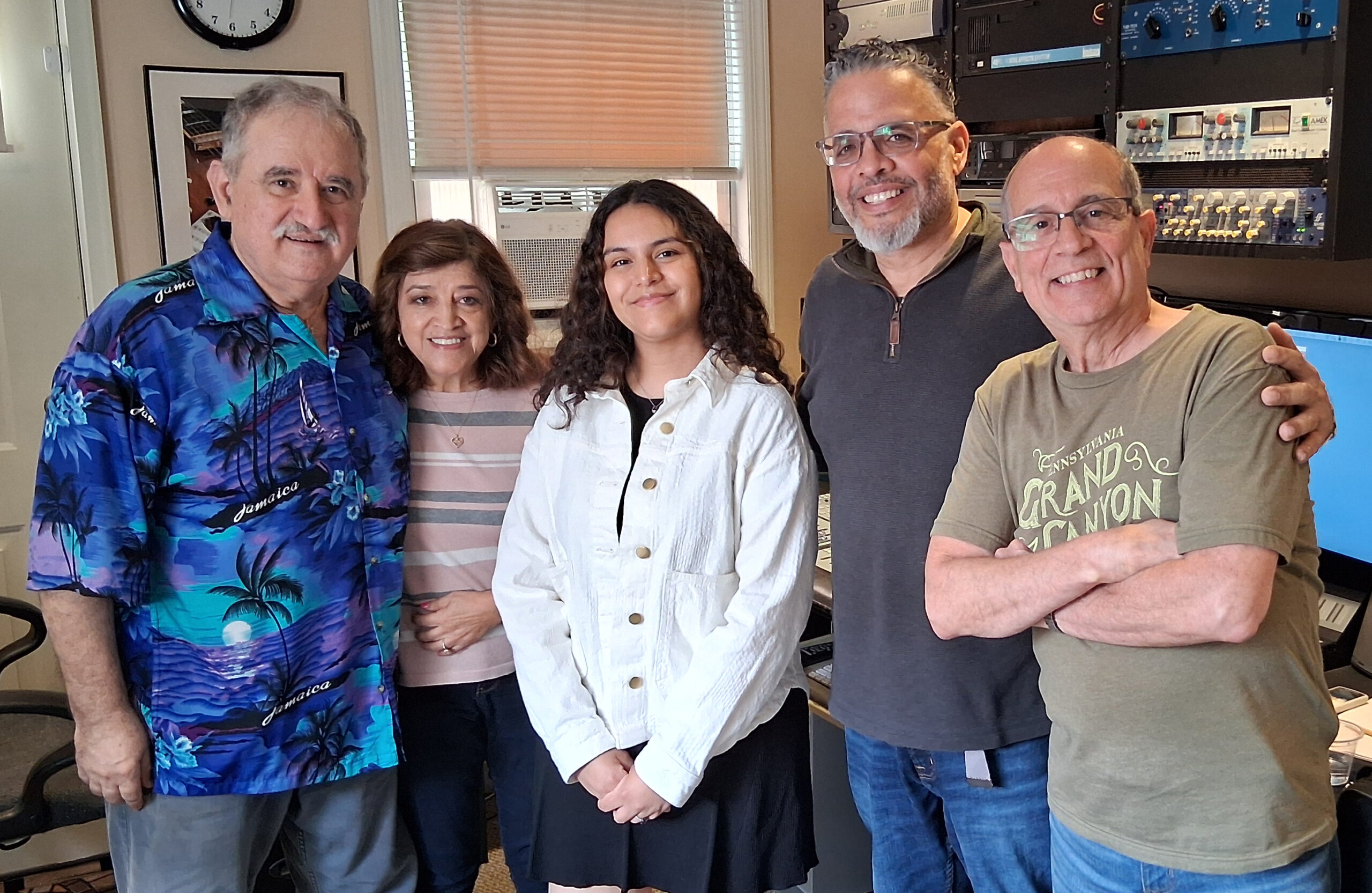 Chembo Corniel, the famous Larry Harlow (El Judío Maravilloso), Demetrios Kastaris, Angel Rodriguez at Vicki Vicki Solá’s WFDU Radio Station’s Fundraiser Concert.