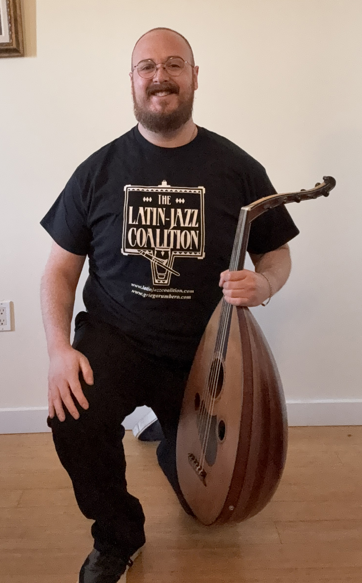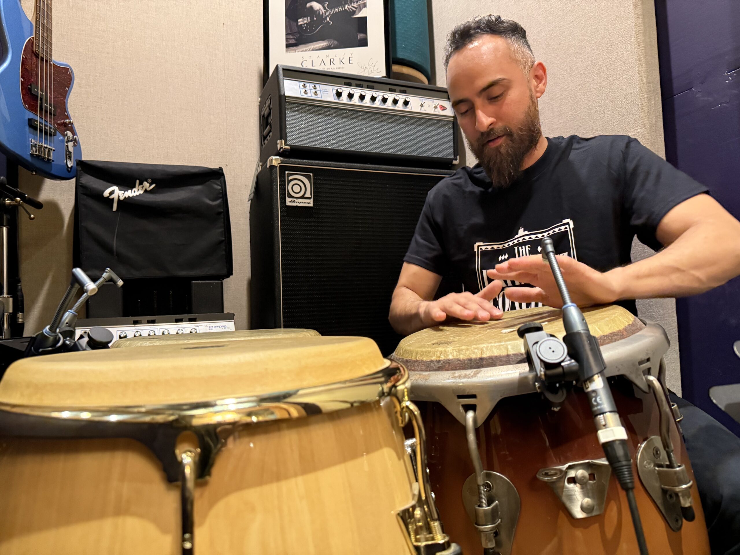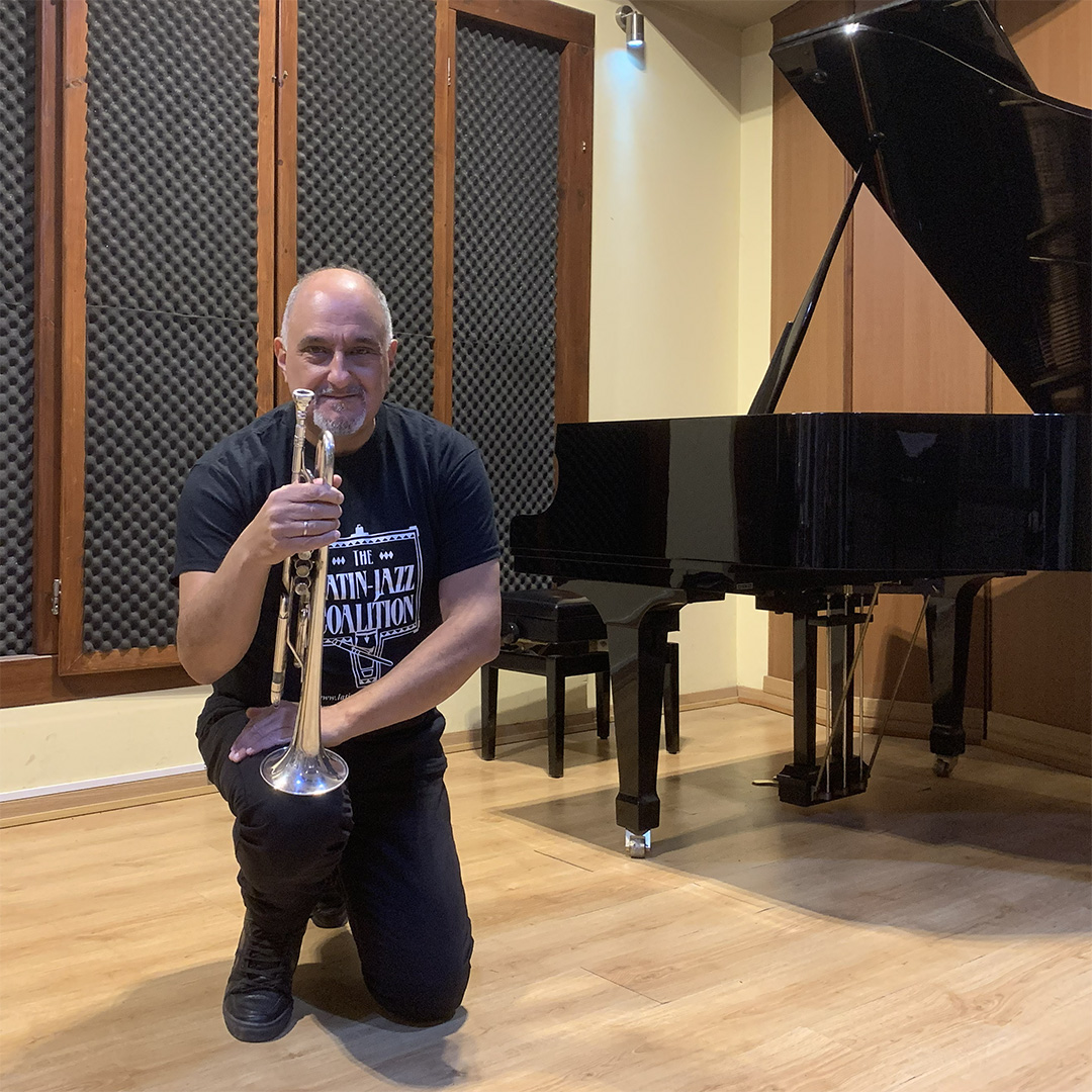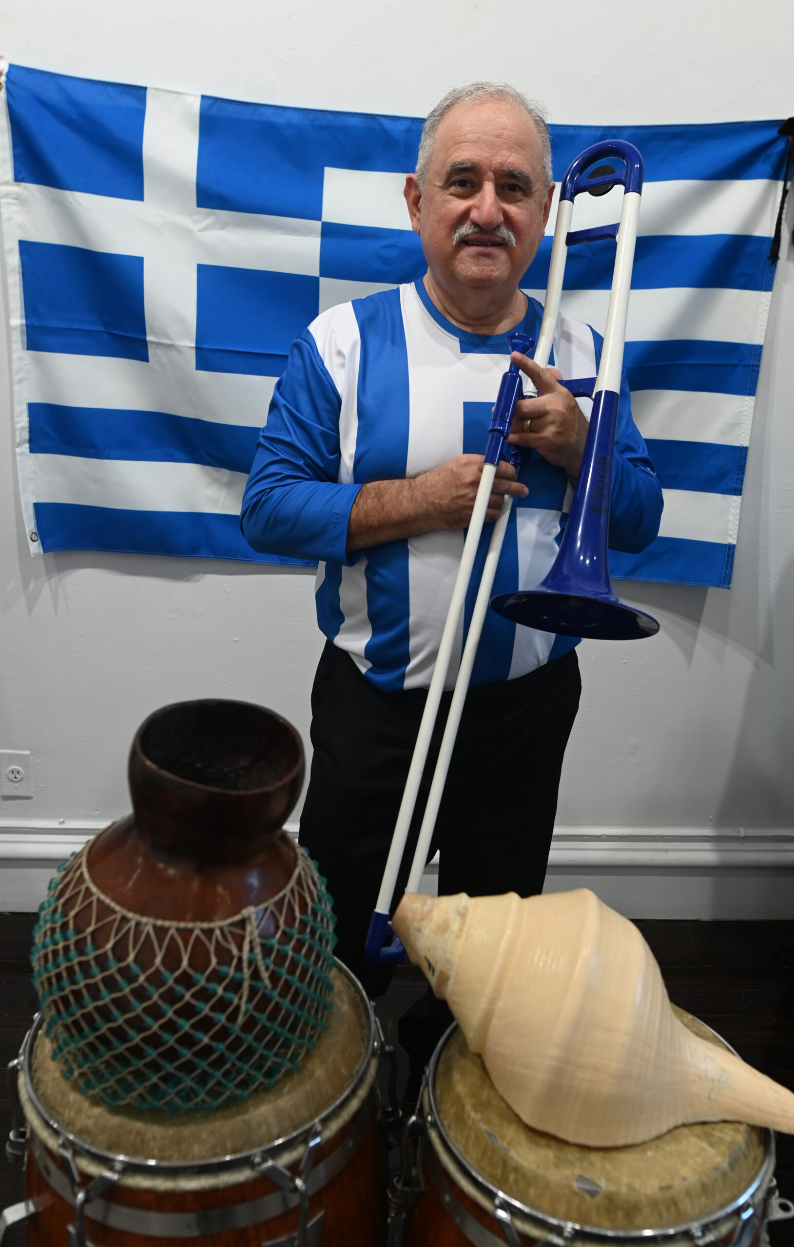 Demetrios Kastaris: “El Griego Rumbero”, in his practice studio at home in Long Island, New York. November 2019. Photo credit: Jerry Lacay.